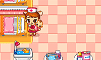 Use o mouse para jogar. Quando chegar um neném, ponha-o no berço. Quando o neném precisar de atenção, leve-o à mesa certa. Quando o neném pensar num coração, está na hora de ir embora.